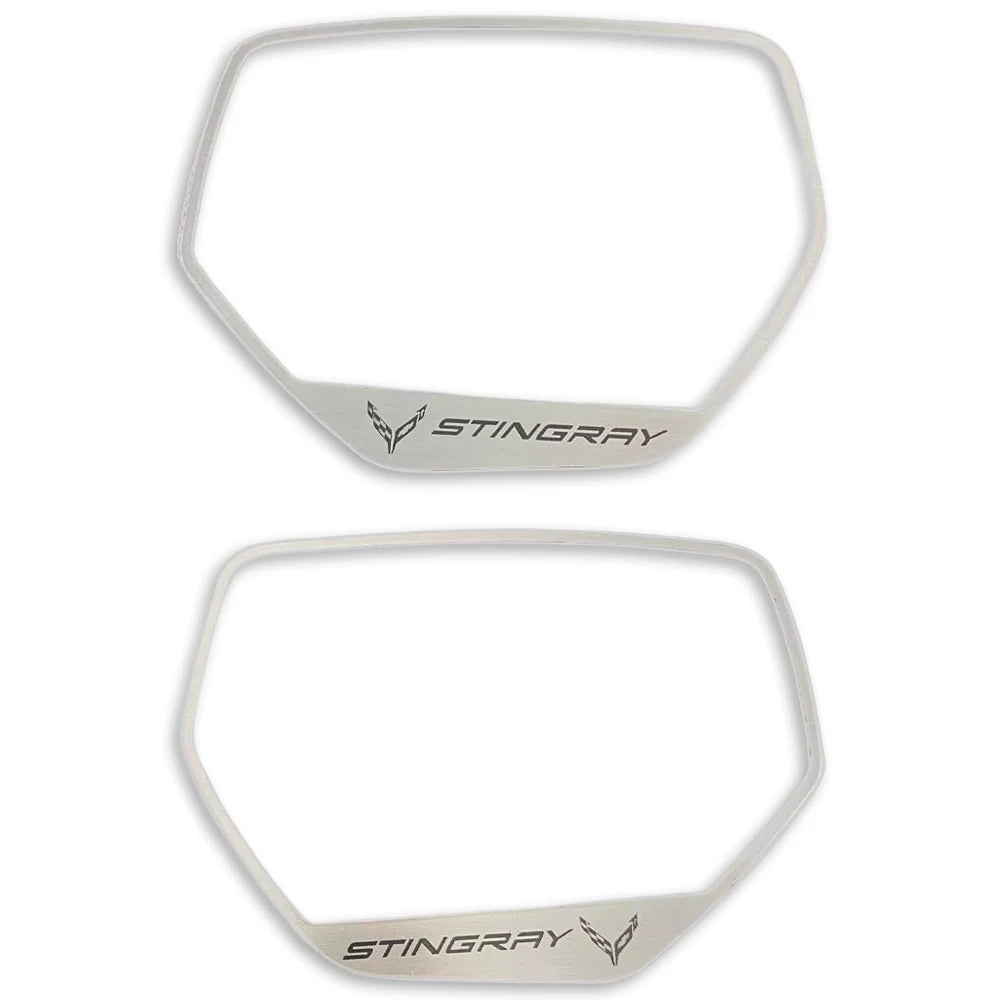 Adding a custom accent to your C8 Corvette is easy with our laser engraved stainless steel C8 Corvette Side Mirror Trim. Engraved with the C8 Flags and the Stingray word. These GM Officially Licensed Corvette accessories are laser-cut for precision fit from premium brushed stainless steel. Order now and install these yourself from the comfort of your home. It's just the right touch for a custom style that you'll love every time you check your mirror.