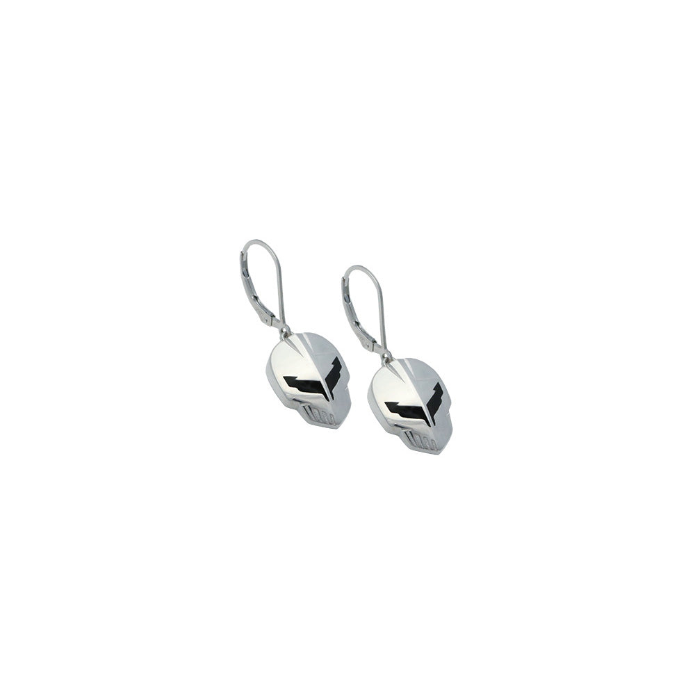 Unleash your Corvette Racing spirit with these C8 Corvette Jake leverback earrings. Crafted in sterling silver, measuring 1/2" x 1.25" , these earrings are a comfortable and eye-catching accessory for any occasion.