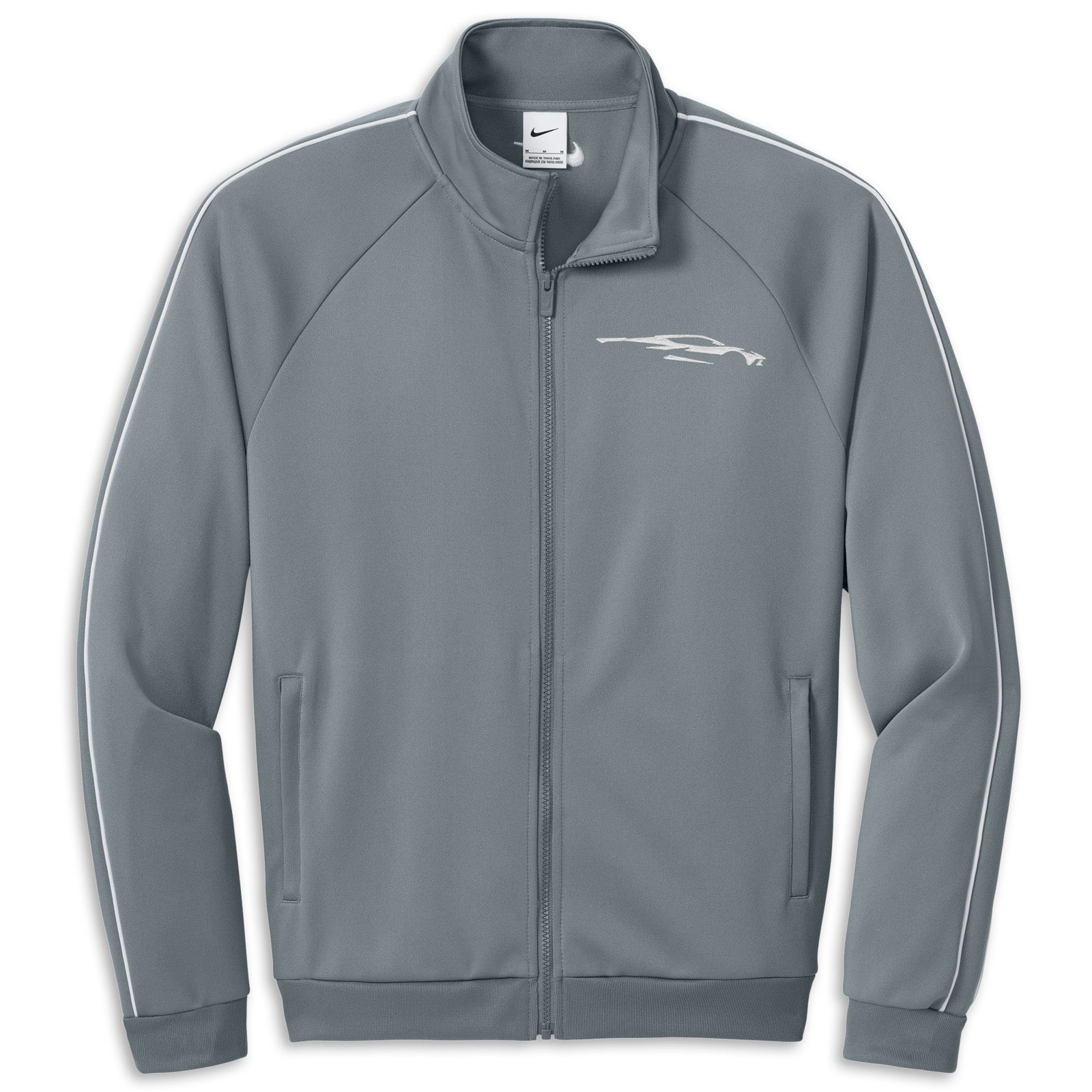 This Corvette Track Jacket is an iconic Nike style with dual white stripes going down the sleeves. Details include a zip-through cadet collar, dyed-to-match zipper and dyed-to-match zippered front pockets. The contrast embroidered Swoosh logo is on the center back, below the collar. 100% polyester.