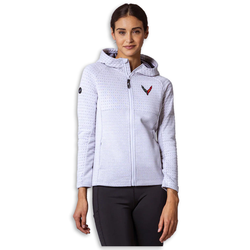 Premium hooded fleece made with thermal insulated fabric and an interior knit pattern pulled through to the exterior exposing the detailed texture. Soft jersey fabric with raglan sleeves, zippered side pockets, and a 3-panel structured hood. Embroidered C8 crossed flags on the left chest. 62% polyester/38% cotton.
