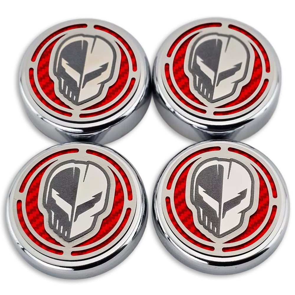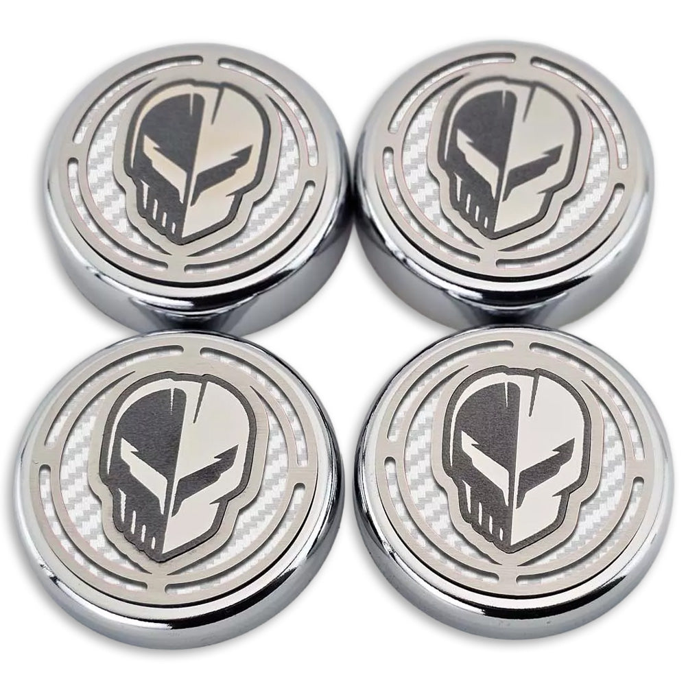 The JAKE Carbon Fiber Cap Cover 4pc Kit is designed to enhance the visual appeal of your Corvettes engine bay. Crafted with precision and attention to detail, these cap covers feature a stainless steel JAKE Skull logo with your choice of a Carbon Fiber Vinyl Inlay Color, a polished base, and a brushed top plate. Installing these cap covers is easy. They simply fit over your factory fluid caps.