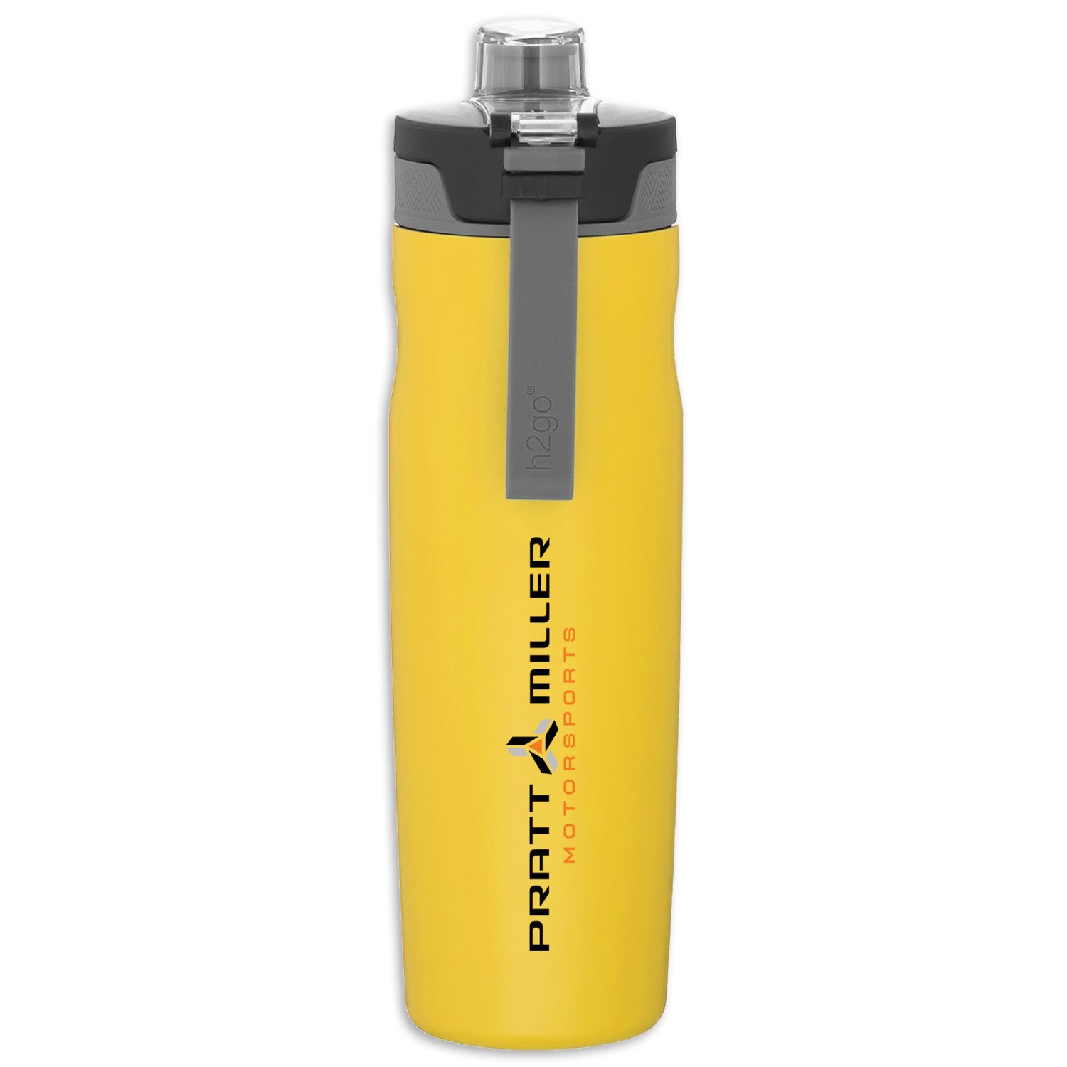 20.9 oz. Dual-wall, 18/8 stainless steel thermal bottle with copper vacuum insulation, threaded one-touch push button lid, locking mechanism, drinking spout.