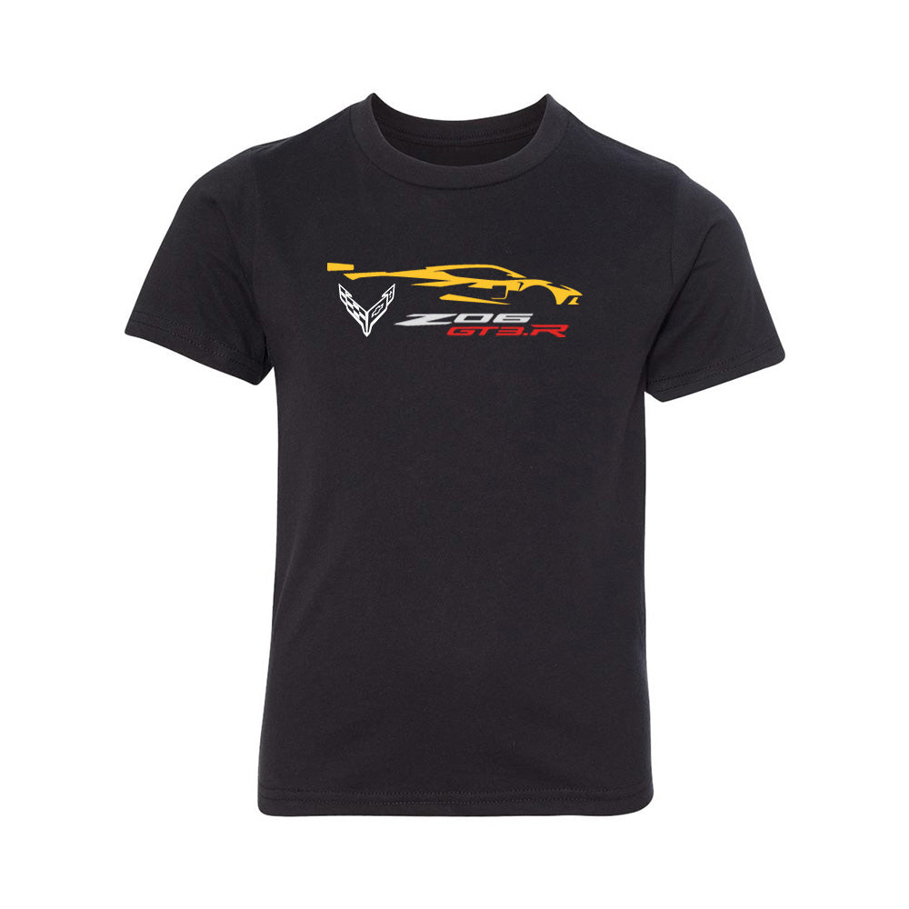 This charcoal tee is made of 60/40 combed ring-spun cotton/polyester and rocks a comfortable fit for any youth. Features a baby rip collar, side seams, and the Z06 GT3.R Gesture logo on the front.