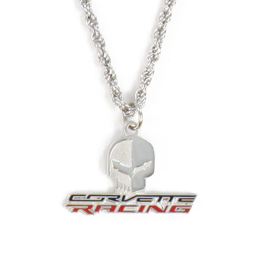 Show off your racing style with this Corvette Racing "Jake" necklace. The charm is 1-1/4"W x 3/4"H with a 18-20" rope style necklace with lobster claw clasp.