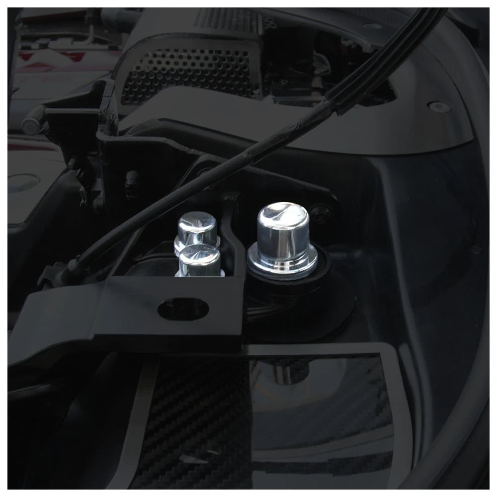 Add a touch of sophistication to your C8 Corvette's engine bay with the C8 Convertible Hinge Dress-Up Bolt And Nut Kit. Specifically designed for the C8 HTC Corvette, this kit includes high-quality covers that fit seamlessly over the factory hinge bolts and nuts, transforming the appearance of your engine bay with a sleek, custom look.