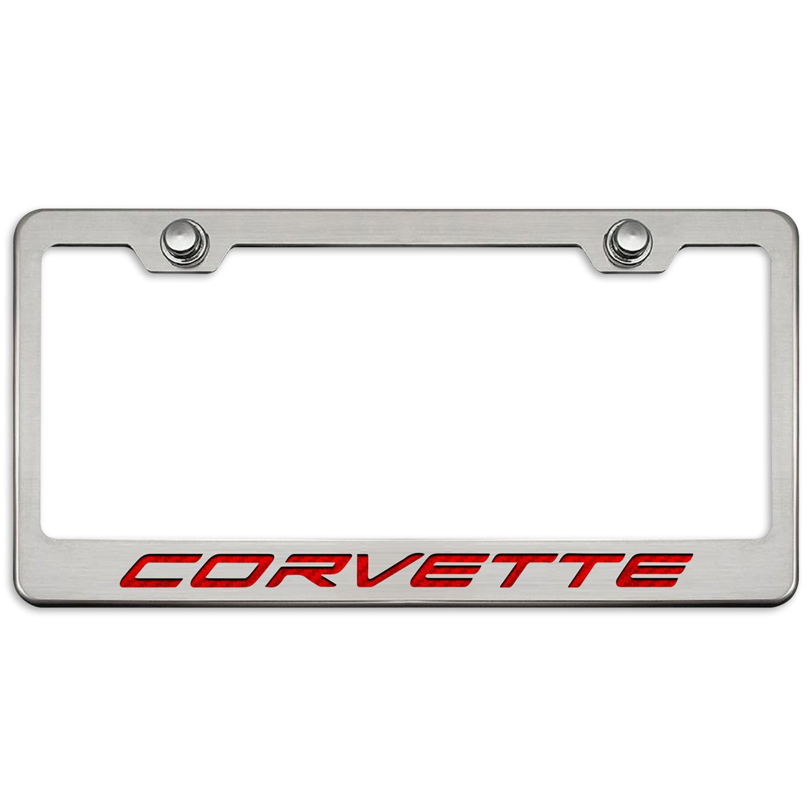 Dress up your C8 Corvette with our custom C8 Corvette Custom License Plate Frame made with Polished and Brushed Stainless Steel. Features your choice of vinyl carbon fiber color inlay for CORVETTE letters in the C8 style. Your C8 Corvette deserves nothing but the best quality.
