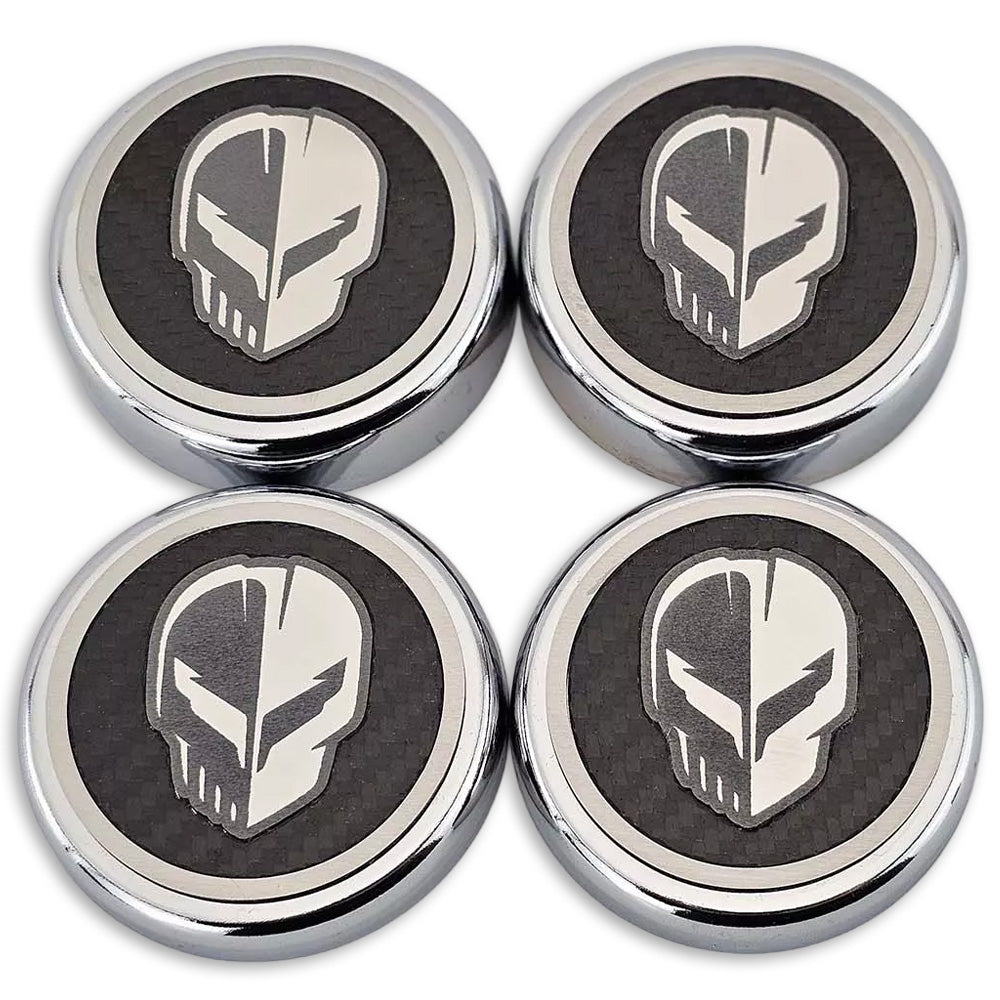 The JAKE Real Carbon Fiber Cap Covers 4pc Set is designed to enhance the visual appeal of your Corvettes engine bay. Crafted with precision and attention to detail, these cap covers feature a stainless steel JAKE Skull logo with real carbon fiber inlay inserts, a polished base, and a brushed top plate. Installing these cap covers is easy as they simply fit over your factory fluid caps.